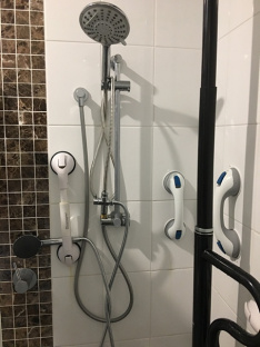 For example, there is one with handle inside the shower, one next to Anns' lift up chair, and one at the dining table.