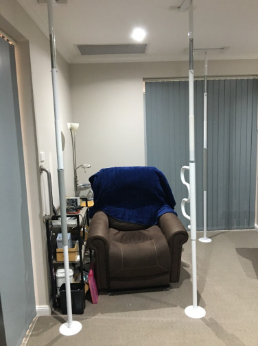 These are floor-to-ceiling adjustable security poles to provide a balance and or grab point in open spaces. There are three of them, one in the ensuite bathroom, one in the lounge entrance off the entryway and one in the open area between the kitchen and the dining area.
